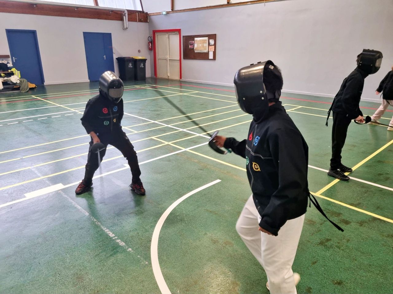 Les élèves des classes primaires ont commencé leur cycle escrime, avec le club d'escrime de Vannes et Mathieu, maître d'armes...